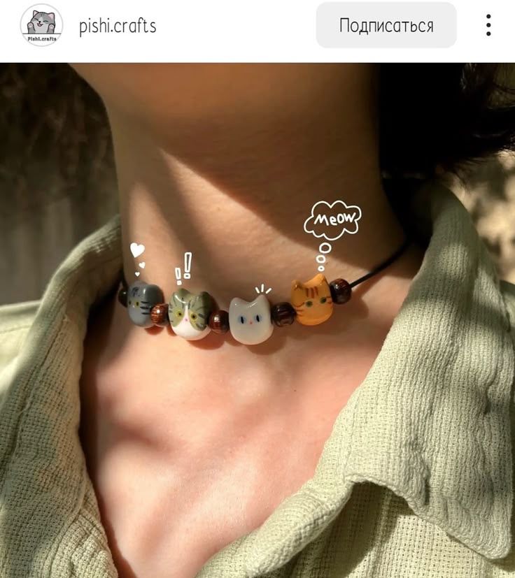 - Adorable cat-face bead necklace with kawaii vibes